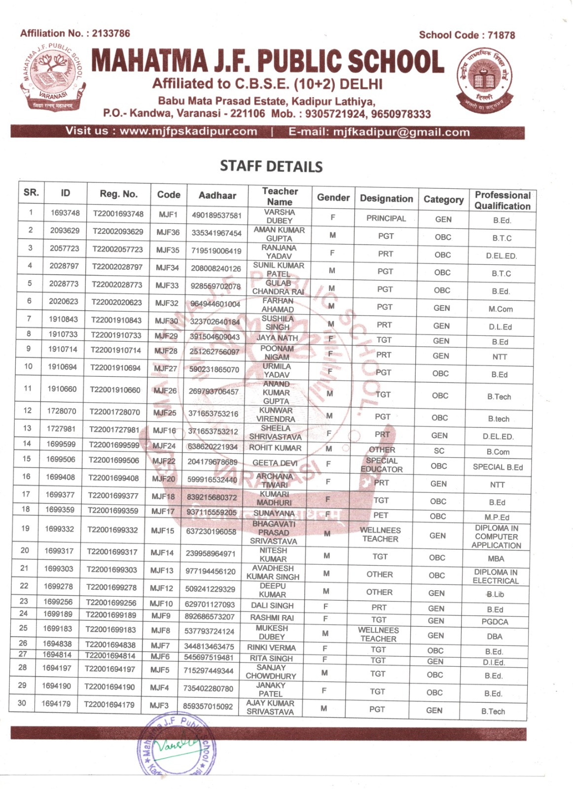 Teachers and Staff